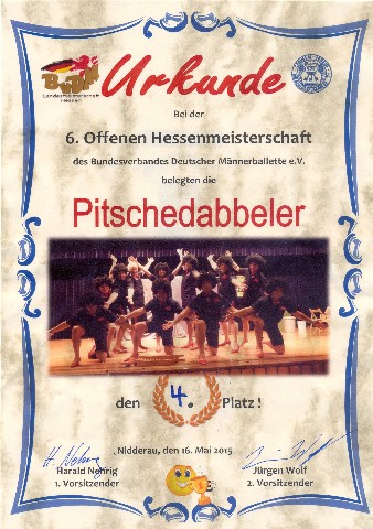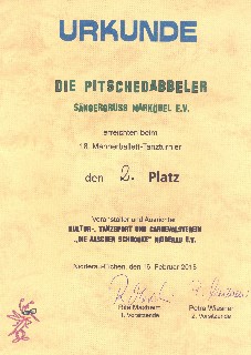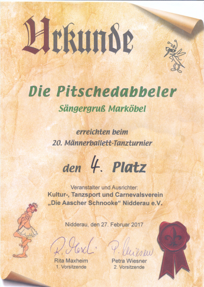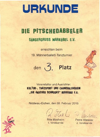 Die Pitschedabbeler, ein Konglomerat aus mehr oder weniger versatilen Hominiden, haben dies in Symbiose mit ihren Trainösen vollkommen verinnerlicht! Die differenzierte und signifikante Darbietung des Ensembles nötigt dem Auditorium regelmäßig ein da' capo ab. Die Interaktion der Protagonisten zeigt die Allegorie der Aktion und der Historie.